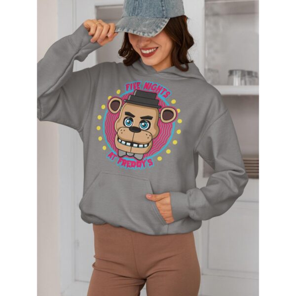 Embrace the spooky charm of Freddy Fazbear and friends with this Five Nights at Freddy's graphic hoodie and tee. Designed for fans of the iconic horror game, it features a vibrant animatronic print on a cosy fleece blend. Whether you're exploring haunted pizzerias or just hanging out, this versatile top keeps you comfortable while showcasing your love for the franchise.