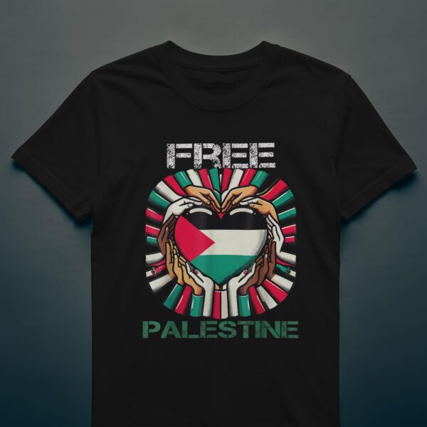• High‑definition print of the Free Palestine heart‑hands design