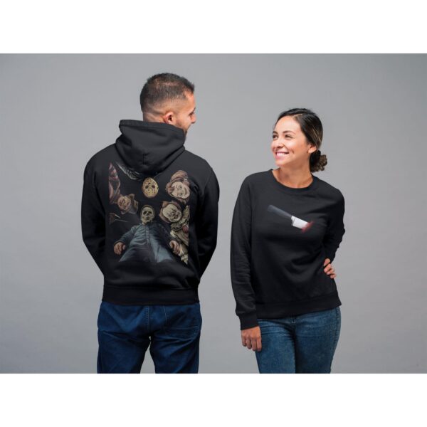 Horror Villains Graphic Tee & Hoodie Set – Slasher Knife Icon Crewneck Apparel