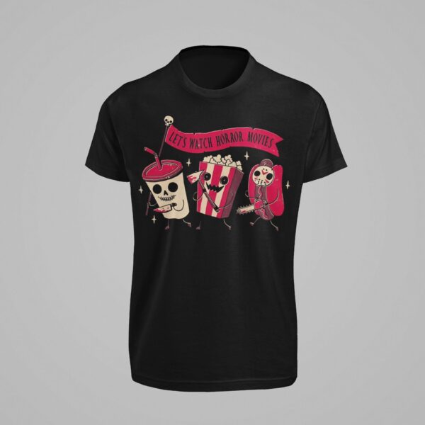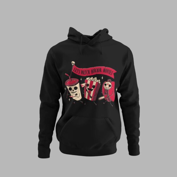 Lets Watch Horror Movies Graphic Sweatshirt Hoodie Or T-Shirt Unisex Black Cotton Blend