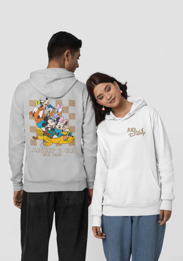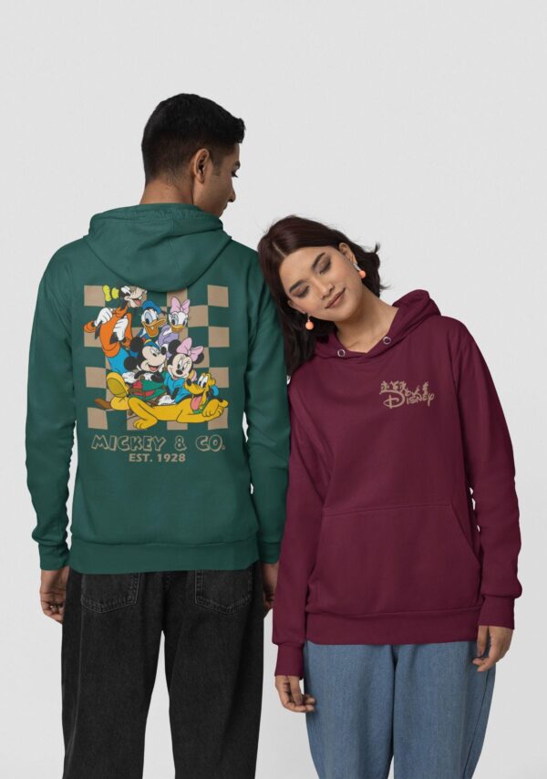 Step into a world of nostalgia and warmth with this Mickey & Co. hoodie. Featuring beloved Disney characters, it blends cozy fleece with iconic design. The durable cotton-polyester mix keeps you snug and stylish, while the vibrant print transports you to simpler times. A timeless piece for Disney enthusiasts.