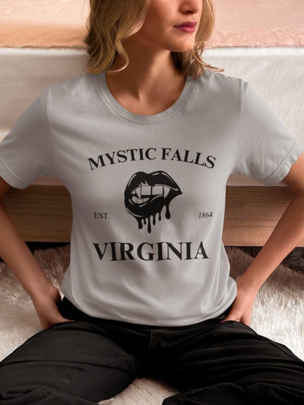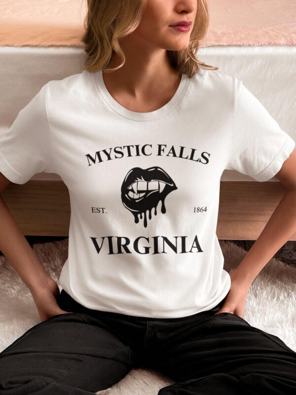 Mystic Falls Virginia Themed Everyday Cotton Tee 9.1 Oz. 100% Cotton Double-Needle Stitching S-4XL