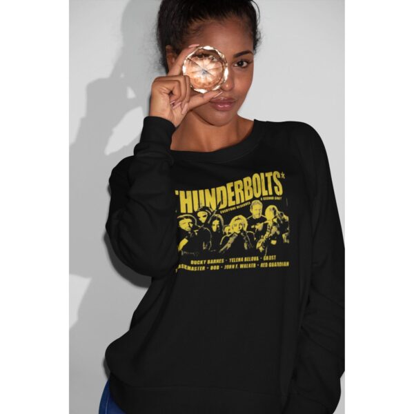 Celebrate the Marvel antiheroes with our Thunderbolts graphic tee and hoodie. Featuring bold artwork of iconic characters like Bucky Barnes, Yelena Belova, Taskmaster and Red Guardian, this black unisex shirt/hoodie offers comfortable streetwear style. Made from a soft cottonāpoly blend with a classic crew neck and roomy hoodie fit, itās perfect for cosplay, movie premieres or everyday wear. Available in sizes Sā4XL and options for tāshirt, sweatshirt, or hoodie, this versatile design lets you rep your favourite Marvel misfits in style.